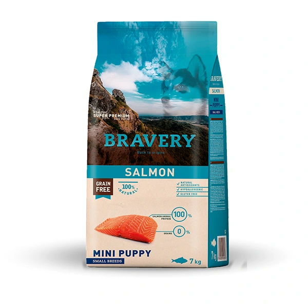 ברייברי – Bravery מזון לגורי כלבים היפואלרגני מגזע קטן 7 ק”ג. ברייברי הוא מזון היפואלרגני מלא ללא דגנים, ללא גלוטן הוא מכיל בשר סלמון בלבד קל לעיכול. בעל טעימות גבוהה