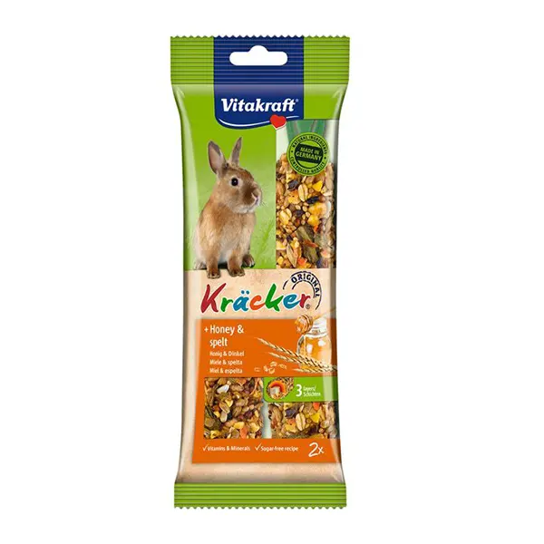 זוג מקלות דבש לארנבת בתוספת דבש מזון משלים למכרסמים. מקלות הדבש מסייעים במניעת גדילת יתר של השיניים על ידי שיופן ומחזקים את המערכת החיסונית. מקל דבש של ויטקרפט הוא פינוק בריא ועיסוק מושלם עבורם.