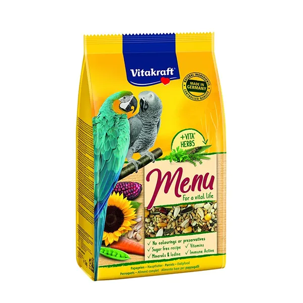 מזון פרימיום מלא לתוכים גדולים.מזון התוכים של Vitakraft מורכב מזרעים וגרעינים שנאספו בארץ המקור של התוכי ומבטיח לו תזונה בריאה ומאוזנת. מכיל ויטמינים, מסייע לשמירה על המערכת החיסונית ועל העצמות.מגיע באריזה נוחה במשקל 1 קג