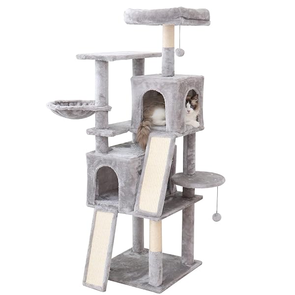 מתקן גירוד מחוזק לחתולים עם חבל סיסל טבעי, מגדל פעילות רב-שכבתי הכולל בית, ערסל ופלטפורמות קפיצה, בעיצוב מודרני שמתאים לכל עיצוב ביתי. נועד לשמירה על הרהיטים שלכם ולספק לחתולכם שעות של משחק ומנוחה.
