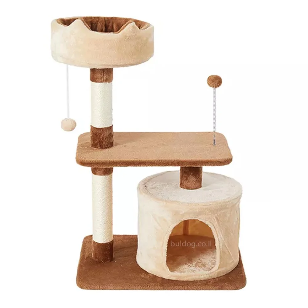 מתקן גירוד לחתול בעל 3 מפלסי משחק וגירוד עם בית מלונה לחתול, כדורי משחק , עמודי גירוד מרובים ומשטח תצפית עליון לחתול. מתקן עמיד בצבע חום לבן שמבטיח לספק שעות רבות של הנאה לחתול שלכם!